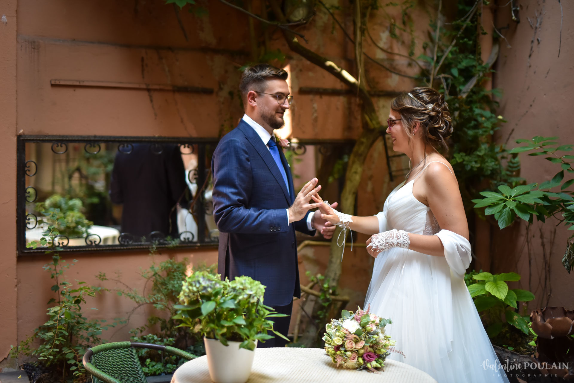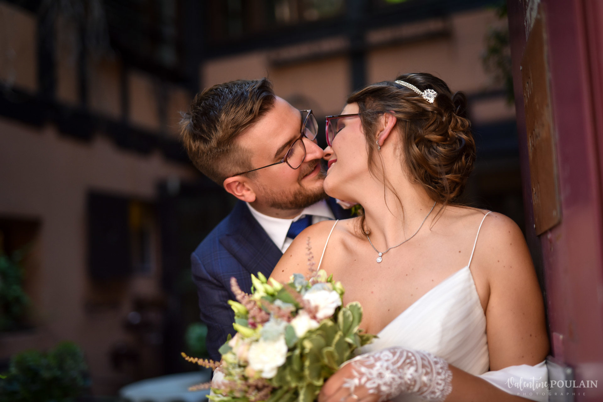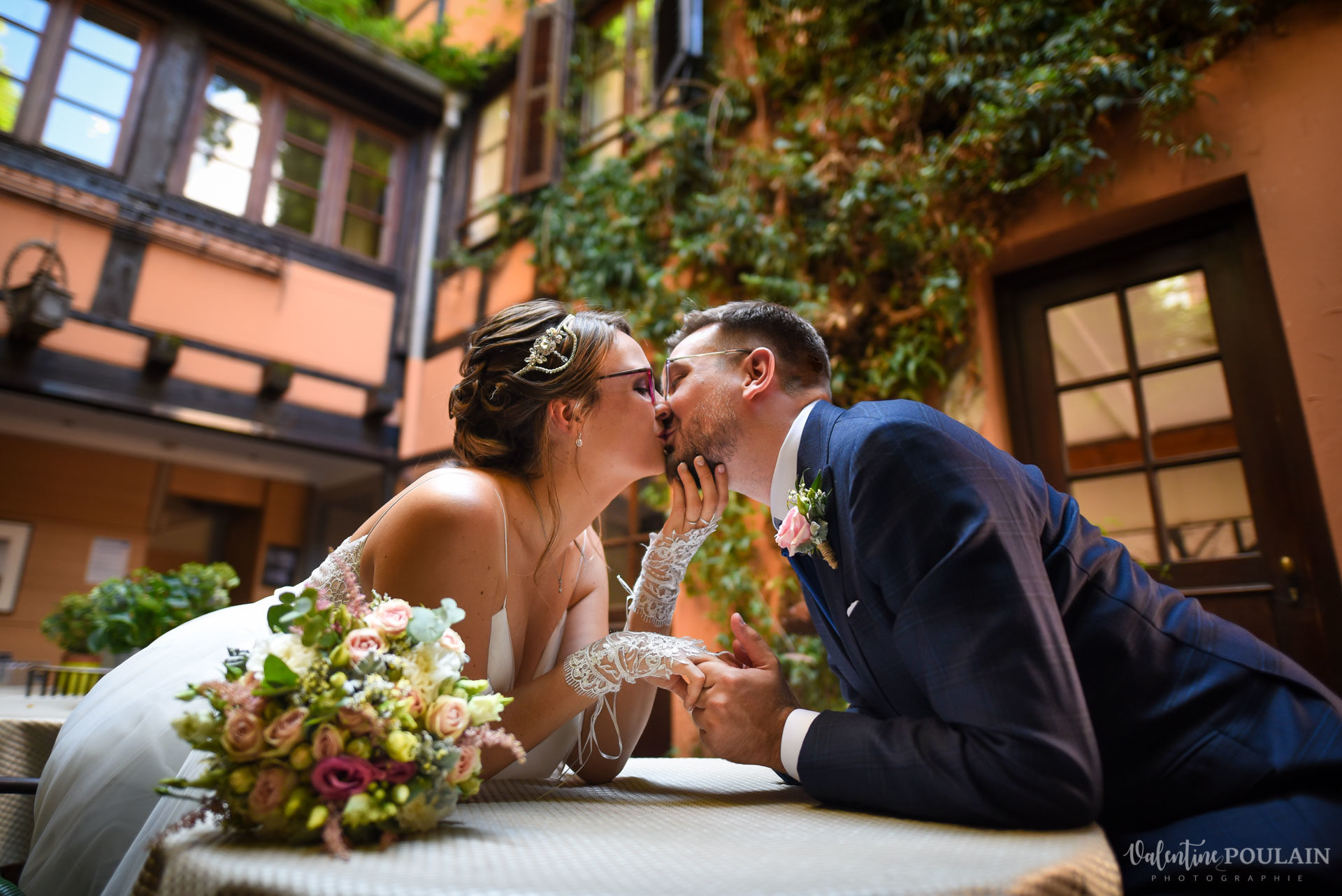 Photographe : Valentine Poulain | Robe de mariée : Pronovias | Costume de marié : Ludan Andres Strasbourg | Coiffure : Koehler Strasbourg | Make-up : Institut métamorphose Strasbourg | Bouquet : Monceau fleur halles Strasbourg | Traiteur : Attitude Gourmande | Sanglier à la broche : Il Buerehoft Chez Josiane & Jean Luc | Fromage : Fromages du Ried : Ferme Goetz, Ferme Durr, A la Petite ferme du Riedwasen | Dessert : Pâtisserie Kamm | Lieu de réception : Lycée agricole d’Obernai | Alliances : Flore et Zéphyr