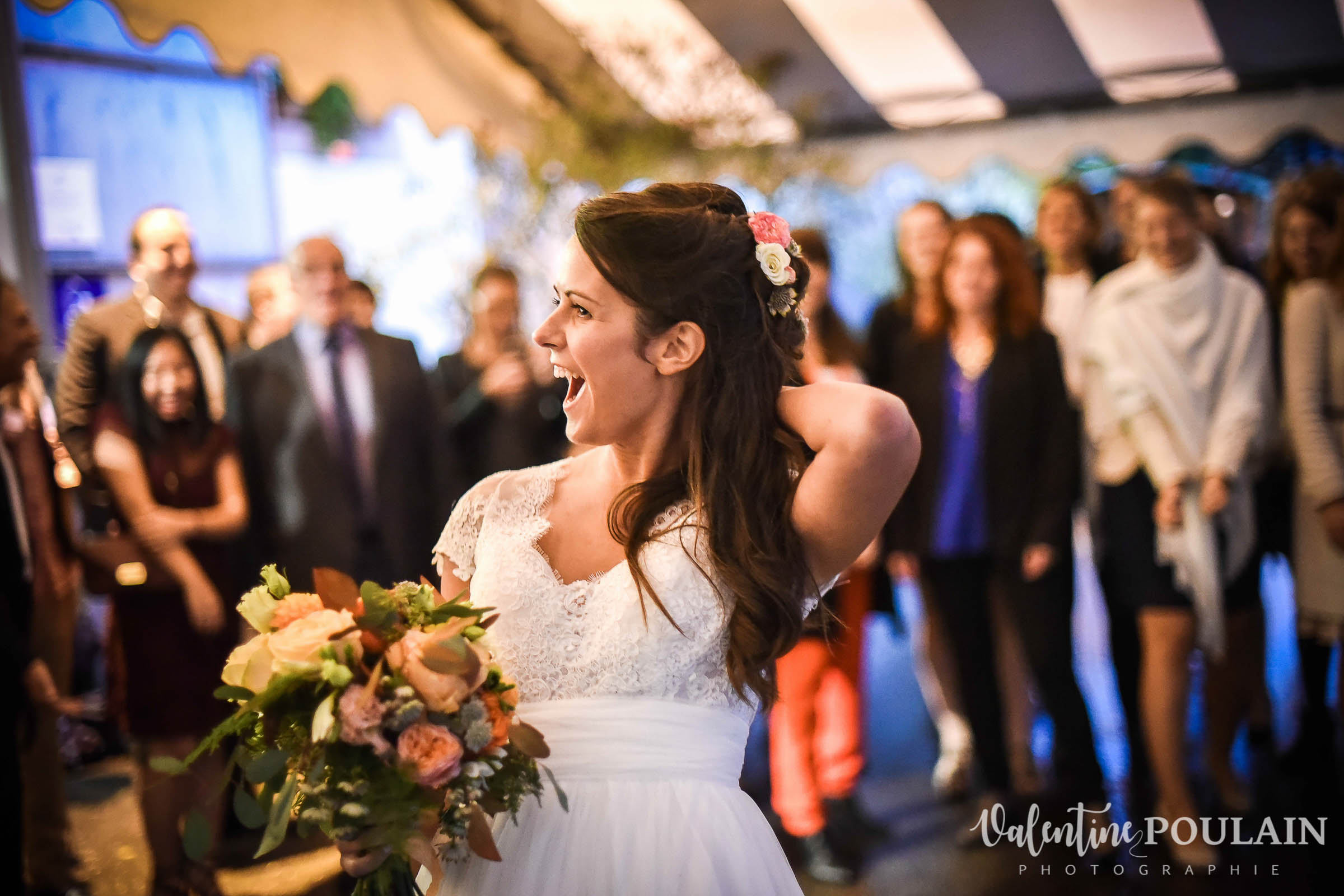 Et le bouquet de Pauline, on en parle ? Une explosion de détails, couleurs et déclinaison d’orange. La couleur orange était déclinée en corail, pêche et abricot. Symbole de la fraîcheur, d’épices ou encore de voyage, ces couleurs étaient sur tous les fronts : bouquet et boutonnières, pétales de fleurs, noeuds papillon des témoins, robes des « bridesmaids » à l’américaine, ou encore d’autres petits détails présents sur les tables de la salle ou au cocktail.