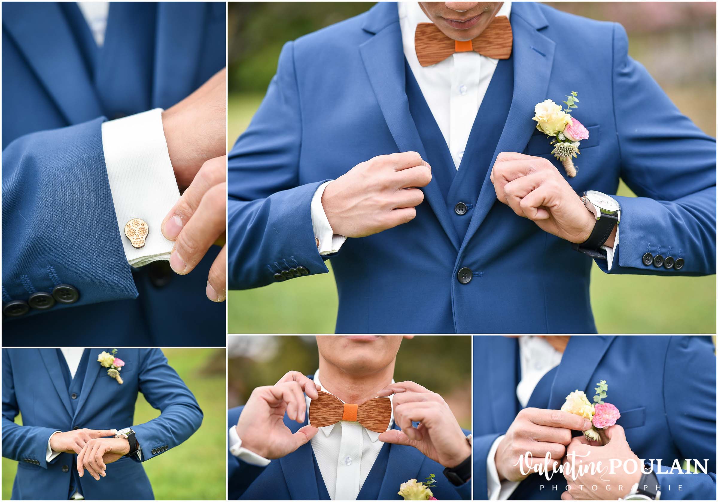 Les préparatifs des mariés se sont déroulés dans la maison familiale à Chèvremont (Franche-Comté). Leur First Look, en présence de leurs 8 témoins s’est déroulé en intimité dans le jardin des grands-parents de Pauline. Elle portait une superbe robe en dentelle, et lui un noeud papillon en bois (oui !!), le nouvel accessoire tendance pour un mariage chic et décalé, pour ces mariés en quête d’originalité 🙂 J’adore !