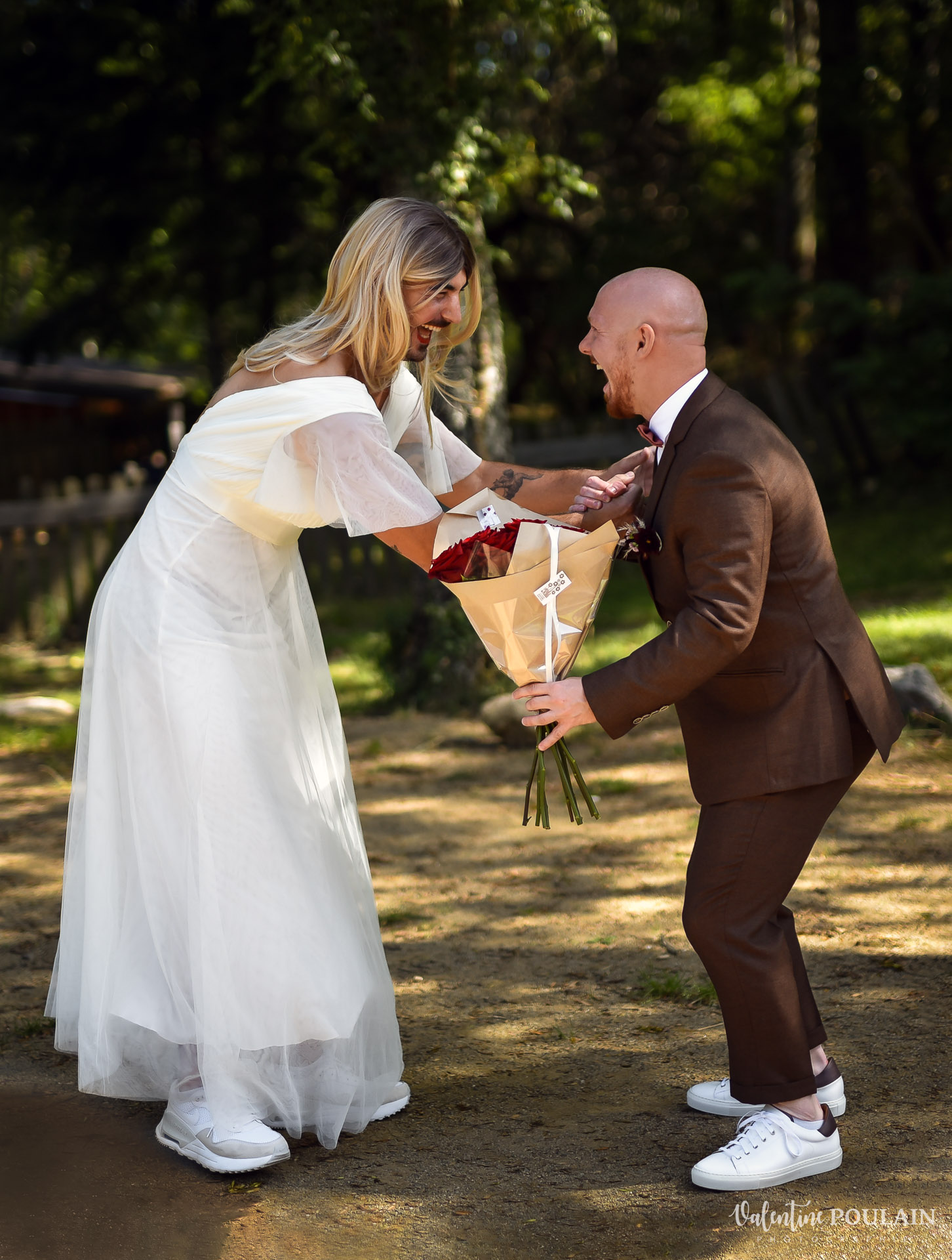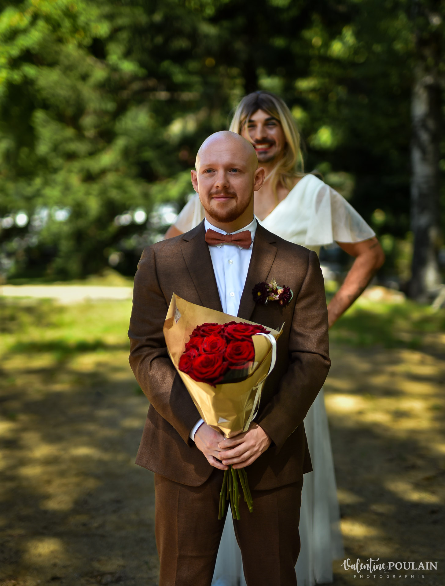 Avant de se rendre à l’église, c’est en pleine nature et en intimité qu’ils se sont échangés leurs voeux.