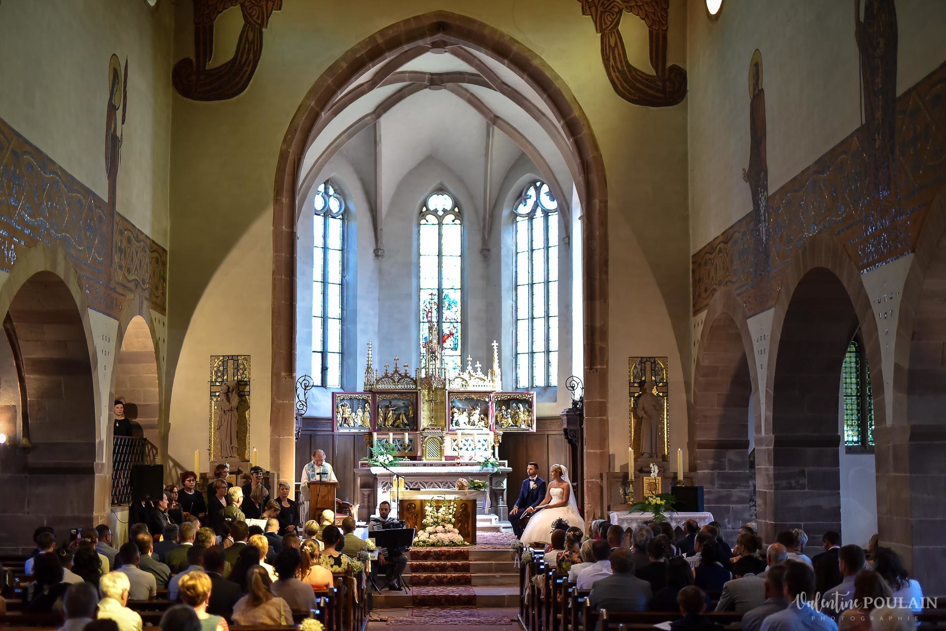 Photographe : Valentine Poulain | Wedding planner : Amande Evénementiel | Robe de mariée : Oui, création mariage | Costume : JP Costumes | Coiffure : Avant garde Soultz | Make up : Le Boudoir de Julie | Fleurs : Lily Bohème | Chorale : Association Dièses et Bémols | Traiteur : Traiteur Thomas | Lieu de réception : Le Petit Wettolsheim | Alliances : L’Alliancier | DJ : Gringos animation