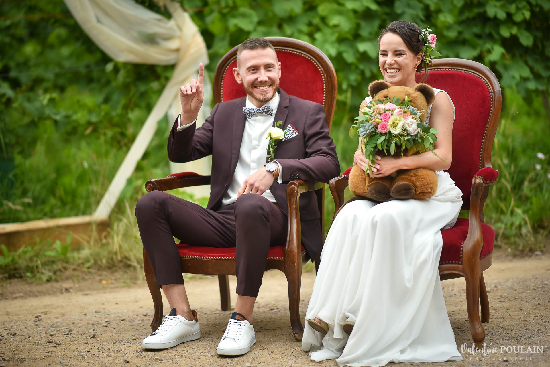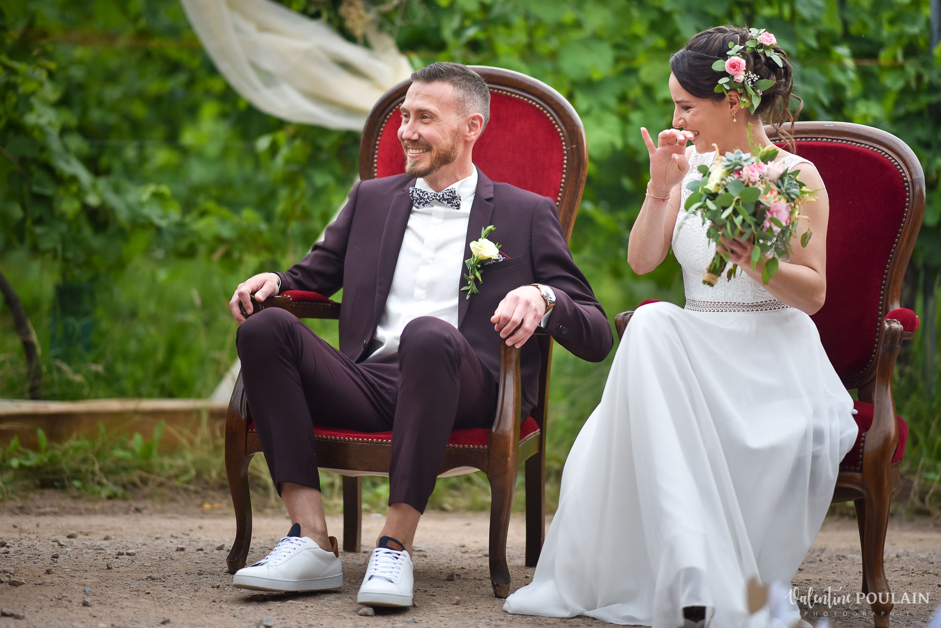 La cérémonie intimiste a été célébrée par leurs témoins et parents émus et touchés. Et on peut dire qu’ils ont donné le ton : on passait du rire, aux larmes, à chaque minute.