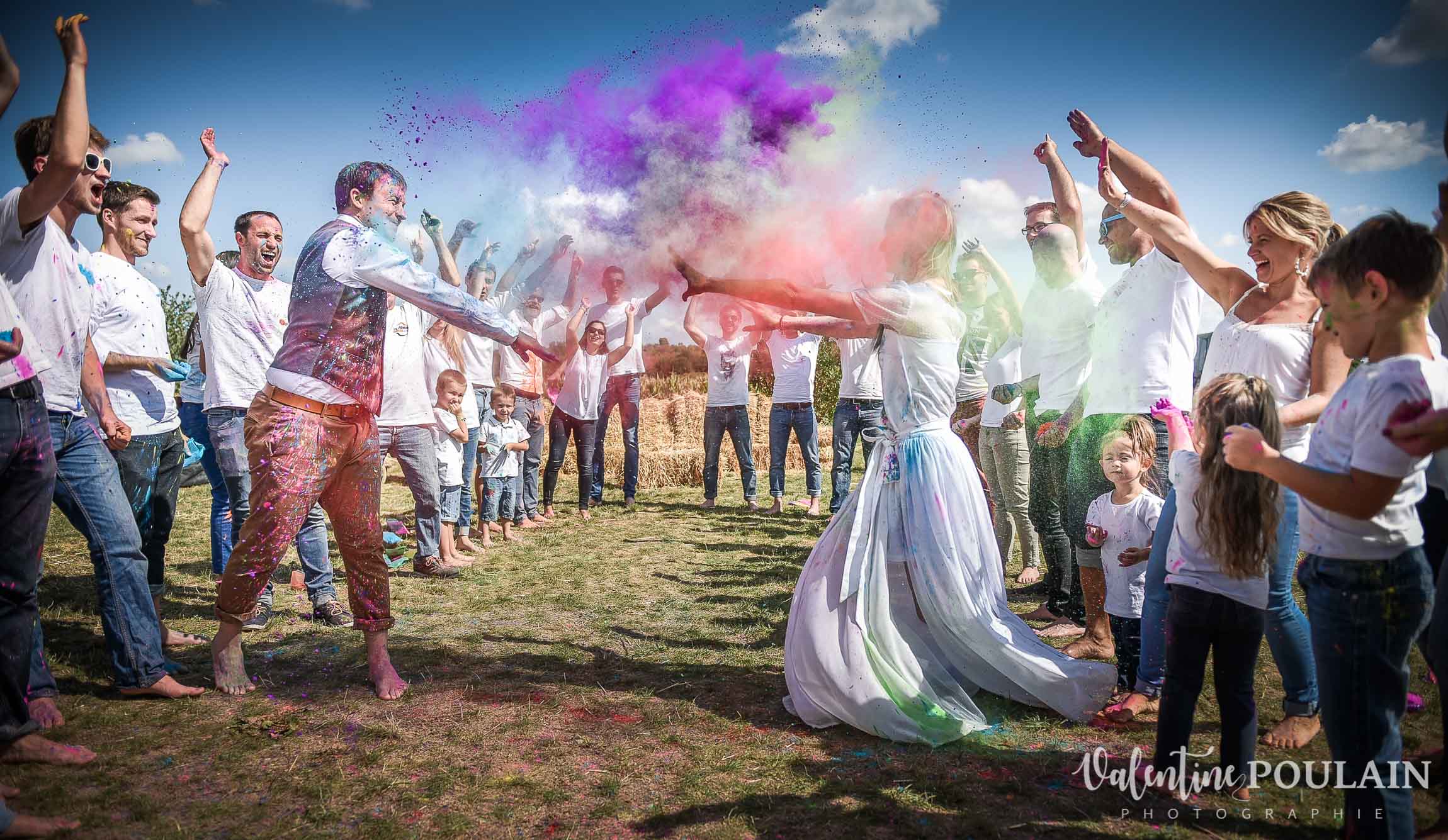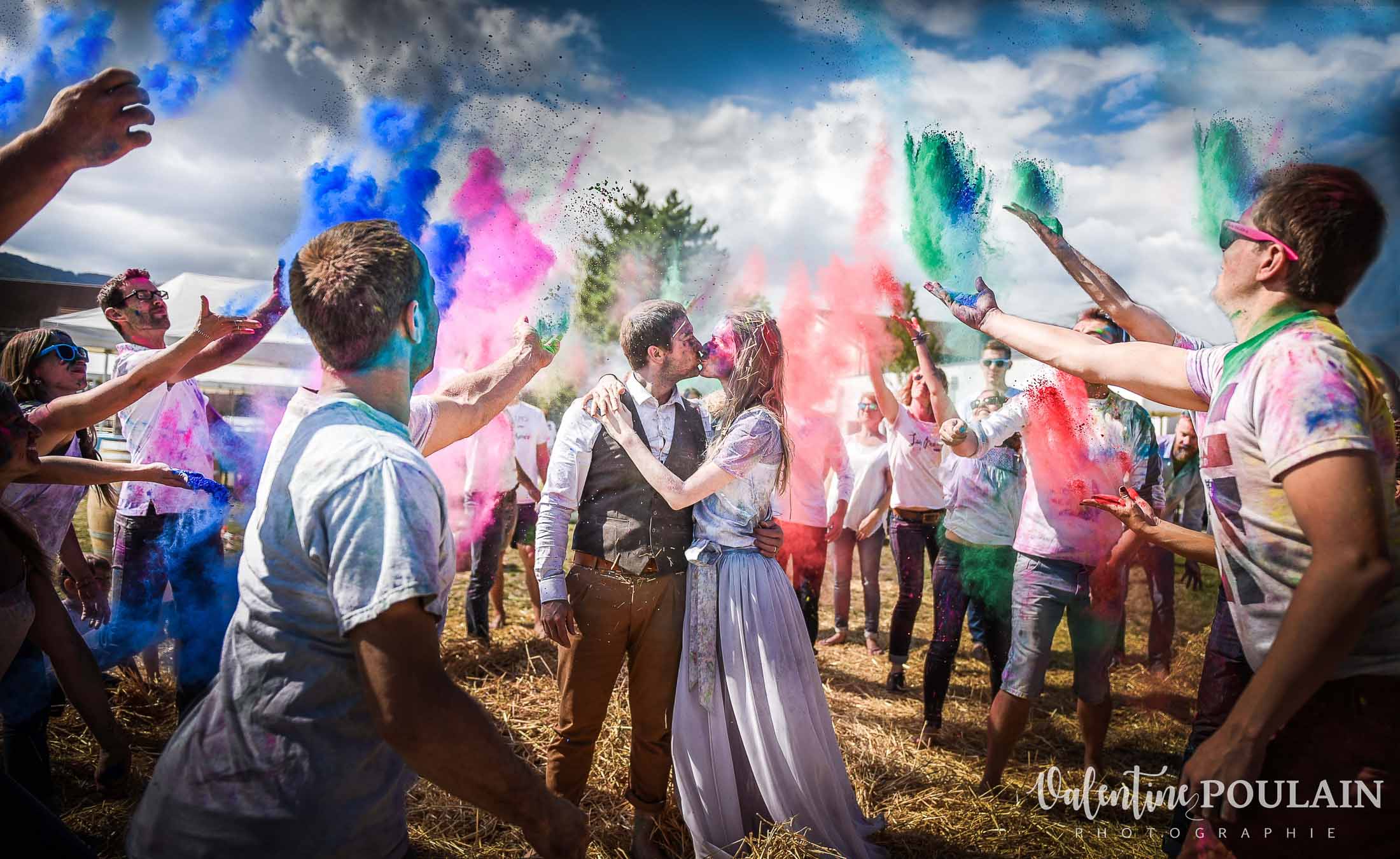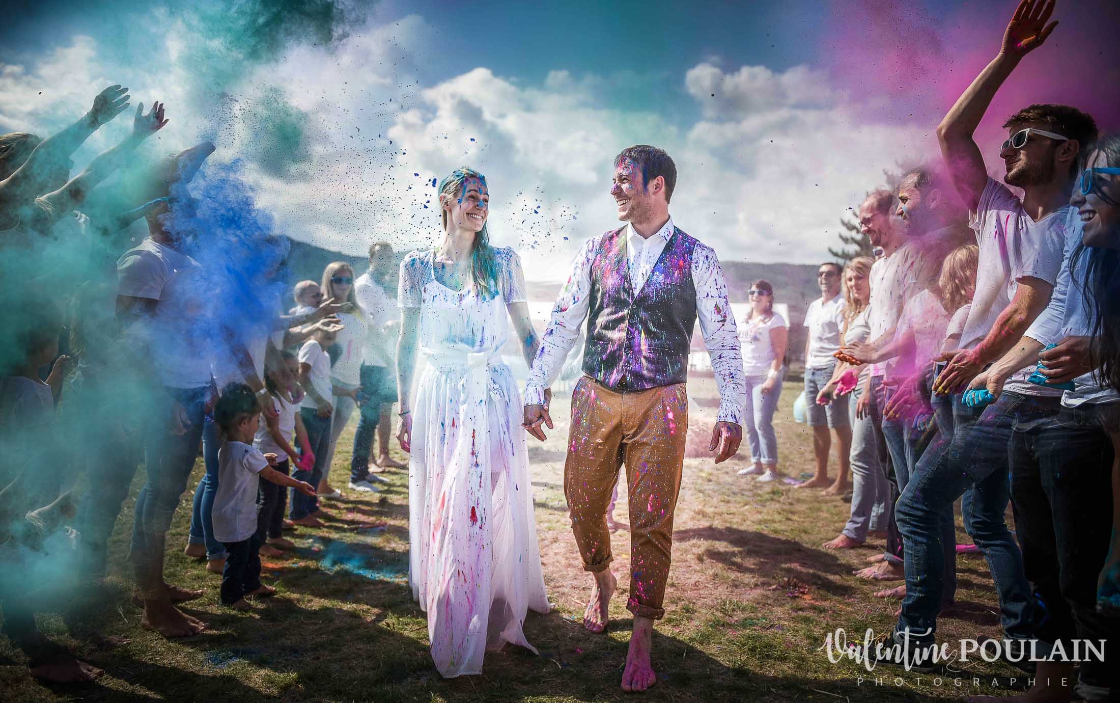Quand vos super mariés vous demandent de réaliser une séance photo d’un « Trash The Dress » de dingue, qu’ils sont prêts à faire une « battle » géante à coups de poudres colorées avec leurs proches toujours partant pour faire la fête … vous foncez !! Je suis complètement fan du côté enfantin et complice qui s’en dégage : de quoi donner le sourire à grands coups de couleurs ! =D